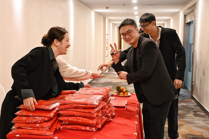 簽到儀式就像一場奇妙的聚會開場秀,每個人的名字在那一刻就像星星被點亮。大家排著隊,一邊和同事歡樂打趣,一邊興奮的簽下自己的名字,并合影留念。共赴這場年度盛會。
